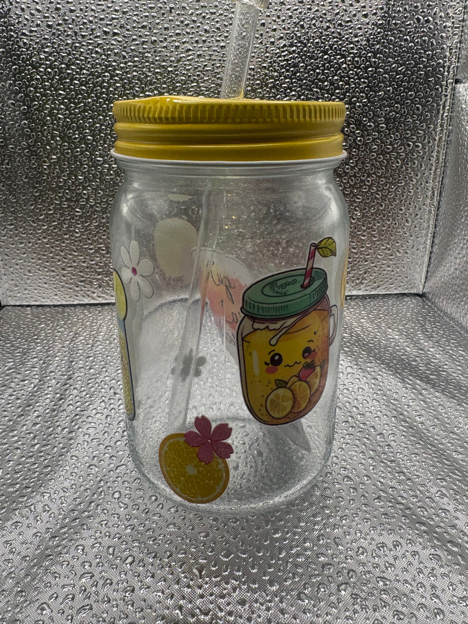 Sip in style with this charming lemonade-inspired mason jar cup! Perfect for iced drinks, smoothies, or your favourite summer beverages, its classic design adds a playful, rustic touch to every sip.